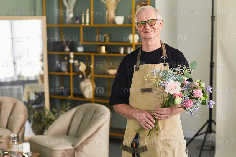 Мужчина-старший цветочник Улыбающийся