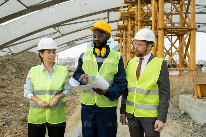 Инженеры обсуждают проект на открытом воздухе
