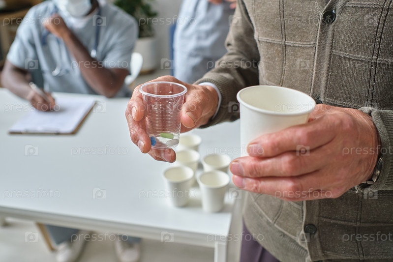 Пожилой мужчина принимает таблетки