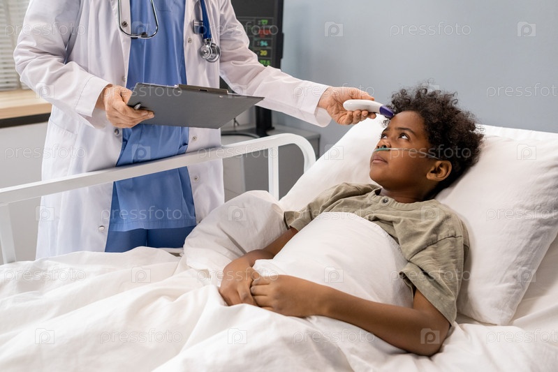 Врач осматривает состояние маленького пациента