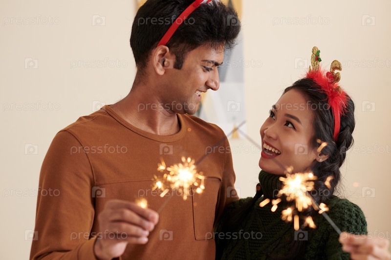 Мужчина и женщина сжигают бенгальские огни