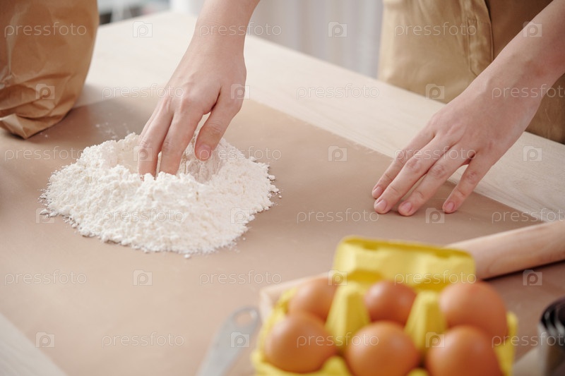 Женщина, смешивающая яйцо и муку