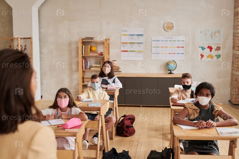 Группа детей, носящих маски в классе