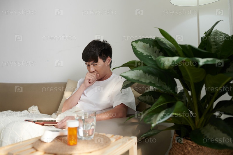 Больной человек читает сообщение от доктора