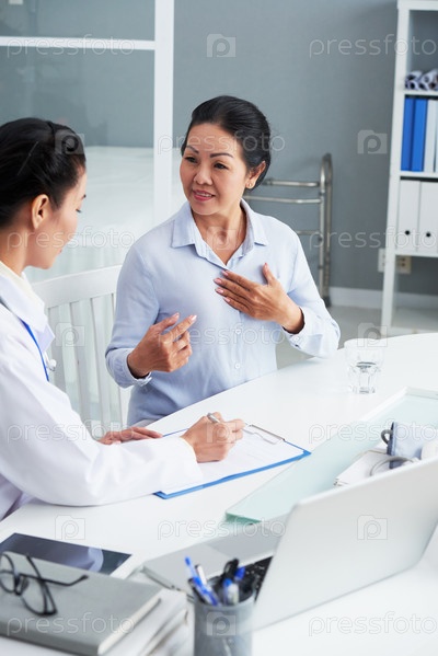 Старшая женщина разговаривает с врачом