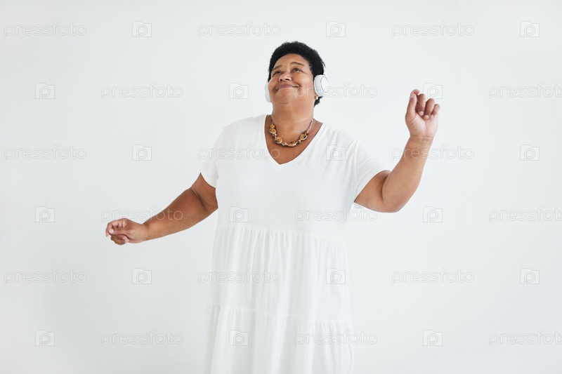 Пожилая женщина танцует в наушниках