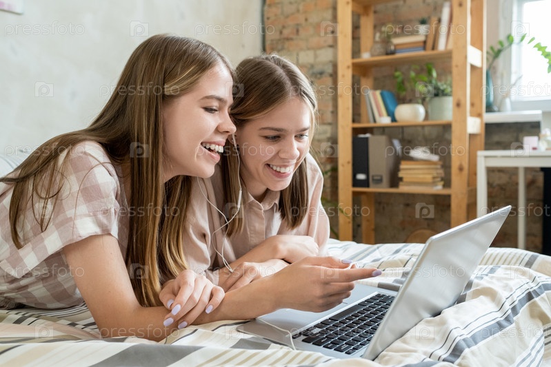 Две веселые девочки-подростки обсуждают момент онлайн фильма