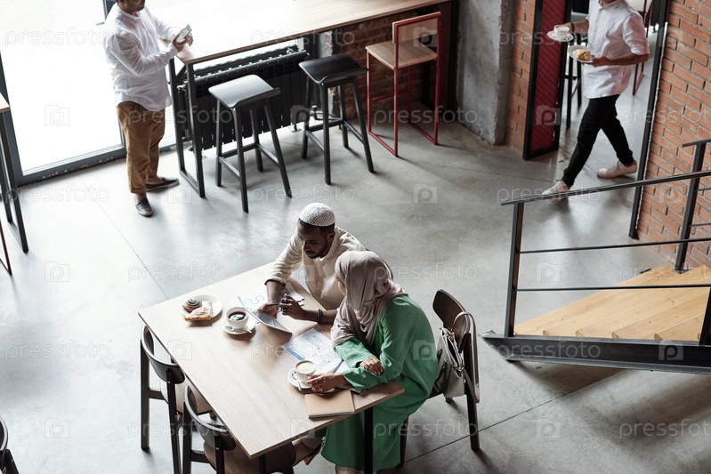 Исламские люди работают в кафе во время обеда