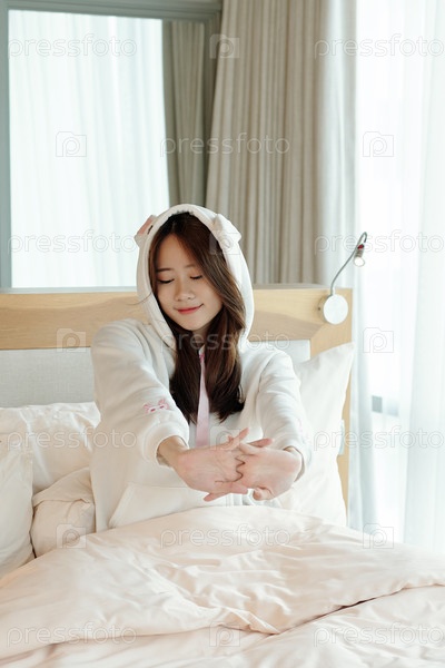 Молодая женщина растягивается в постели