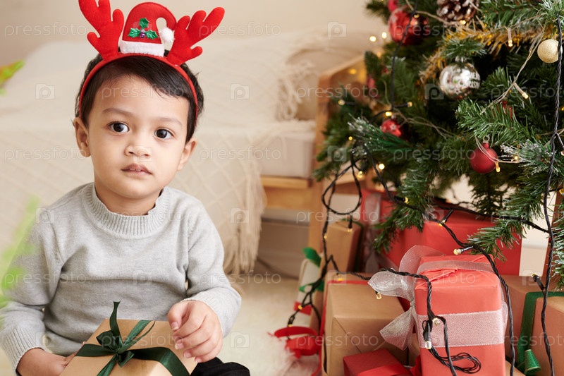 Открытие рождественских подарков мальчику