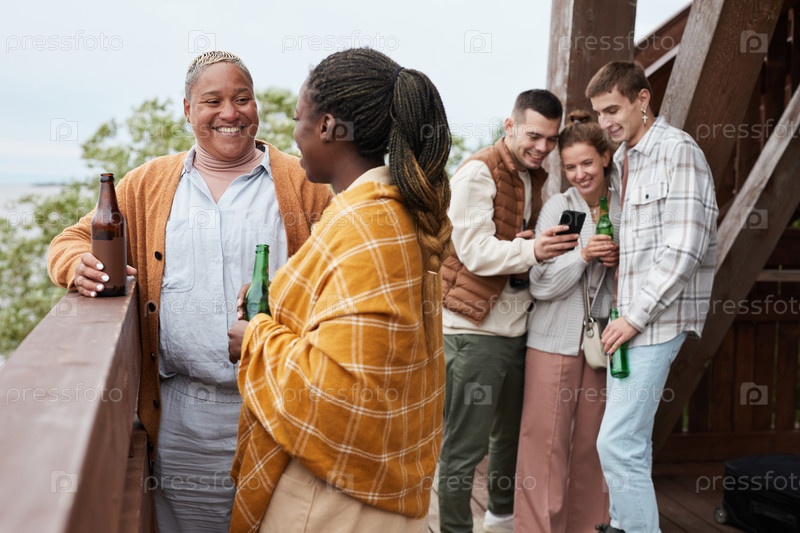 Группа друзей в озерном доме
