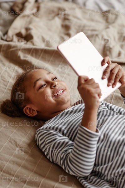 Милая афроамериканская девушка играет в мобильные игры