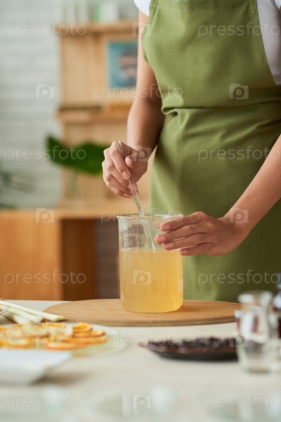 Женщина, смешивающая расплавленную мыльную базу