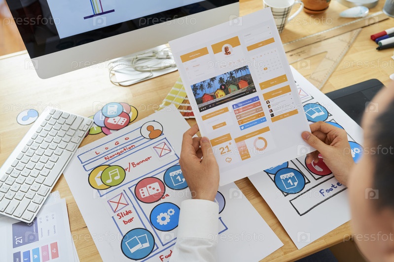 Дизайнер, работающий над Mobile App Layout UI