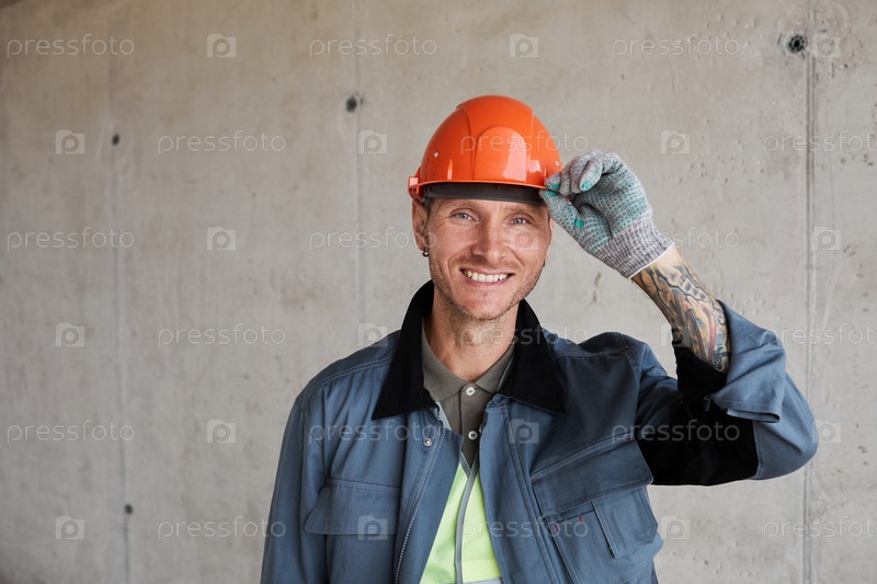 Портрет татуированного строительного рабочего
