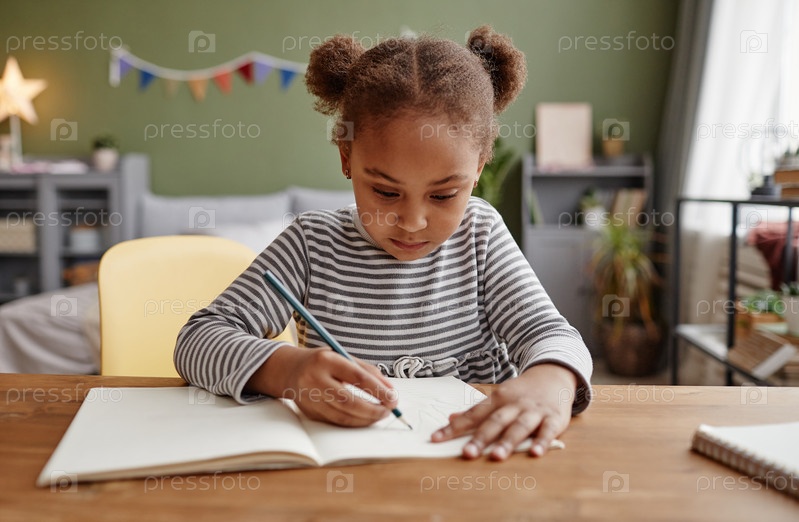 Милая афроамериканская девушка учится дома