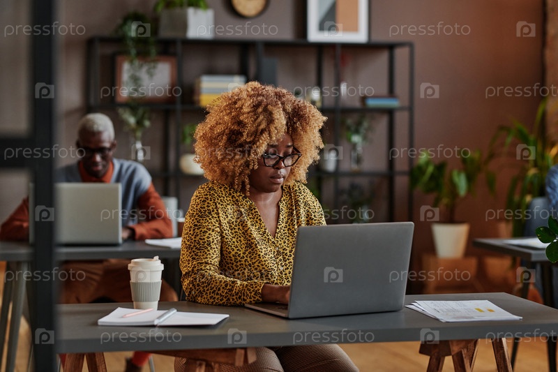 Деловая женщина печатает на ноутбуке в офисе