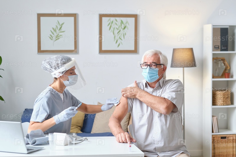 Старший мужчина получает вакцину