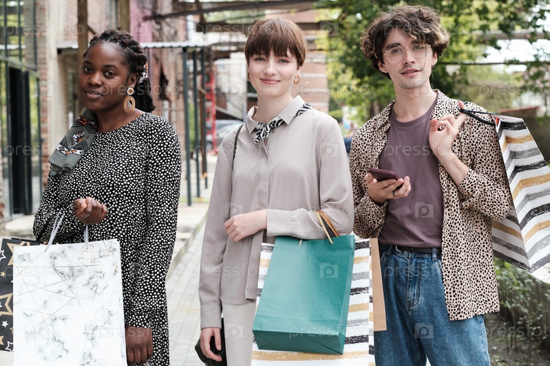 Друзья делают покупки в городе
