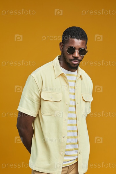 Портрет молодого афроамериканца на желтом