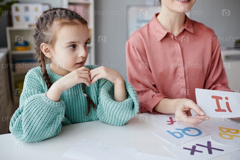 Маленькая девочка сидит на уроке английского