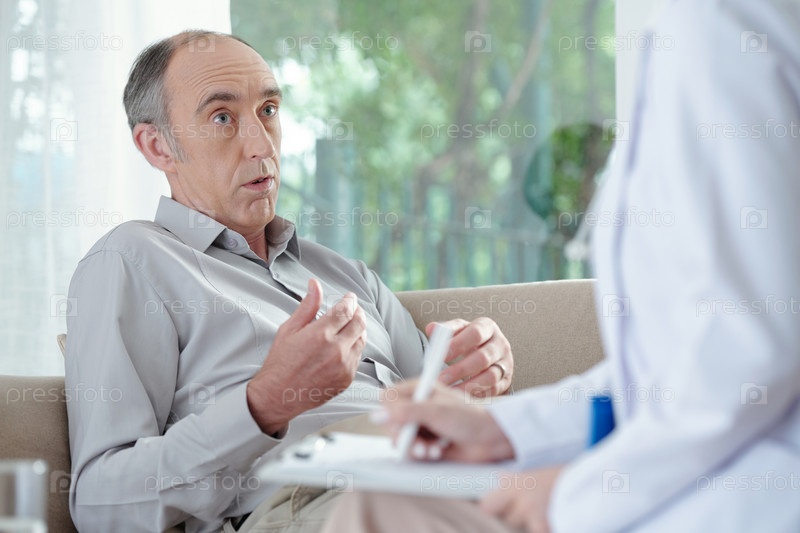 Старший мужчина разговаривает с доктором