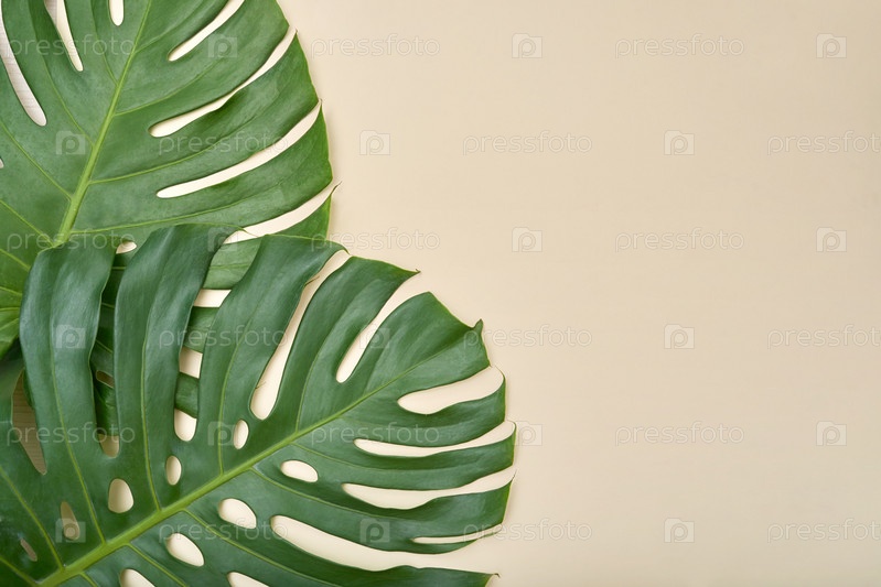 Тропические листья на пастельном фоне