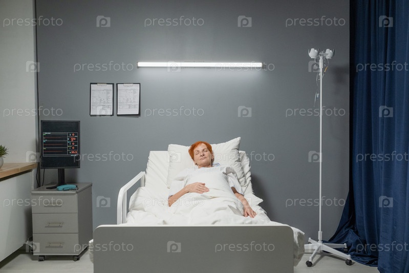 Больная женщина, лежащая в постели на больничном отделении