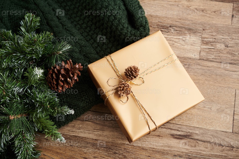 Рождественский подарок и сосновые конусы