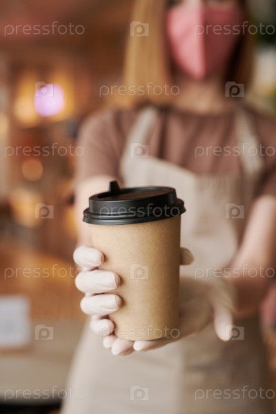 Официантка дарит кофе клиенту