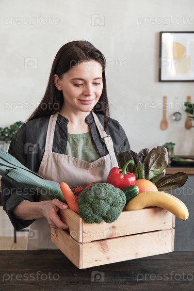 Молодая женщина готовит ингредиенты для приготовления пищи