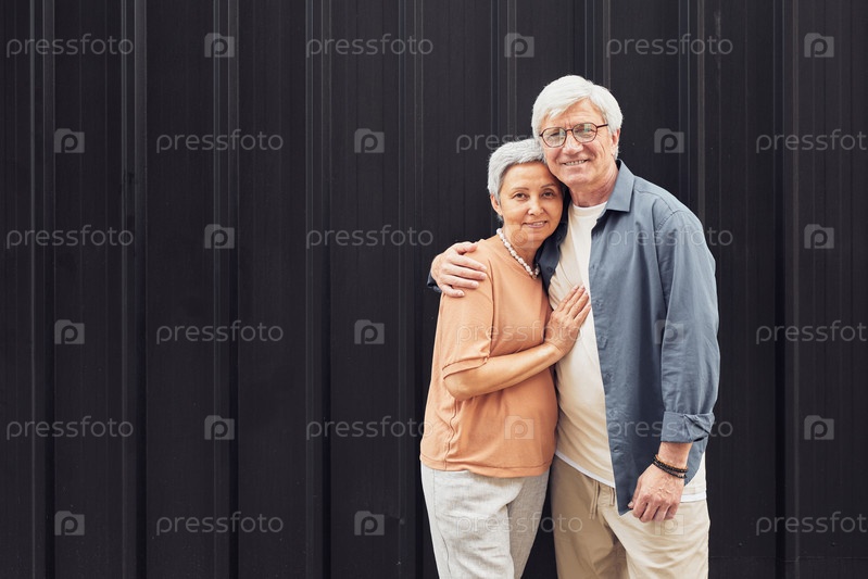 Портрет современной зрелой пары, обнимающейся