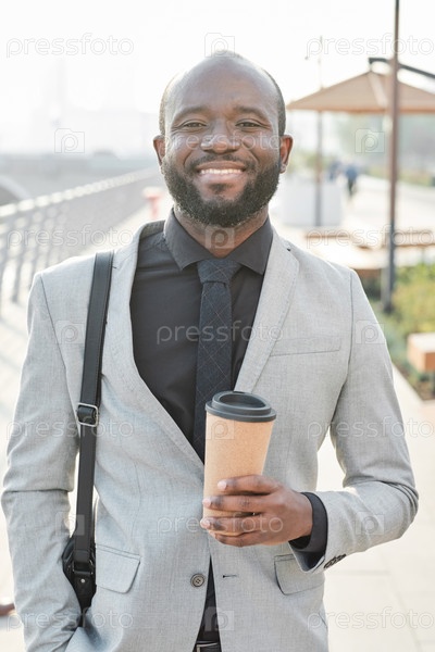 Бизнесмен-американец с чашечкой кофе африканский