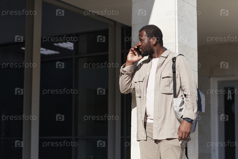 Африканский американец говорит со смартфона на солнце