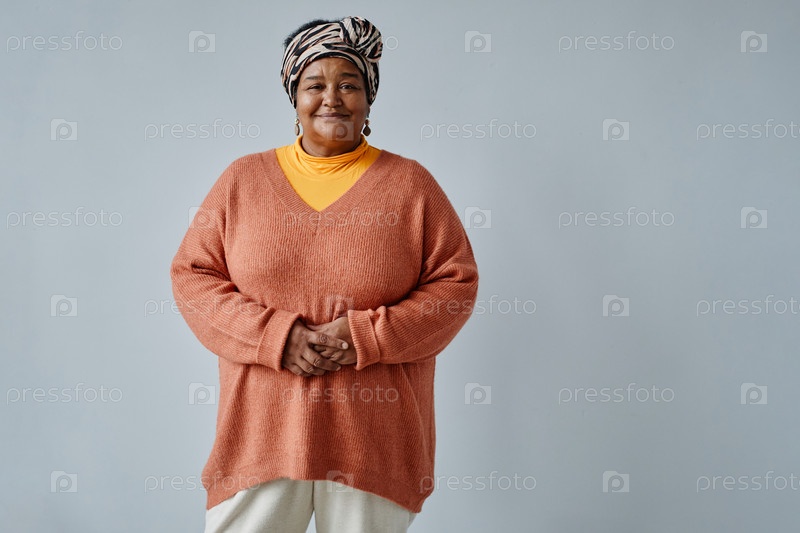 Веселая черная старшая женщина в студии