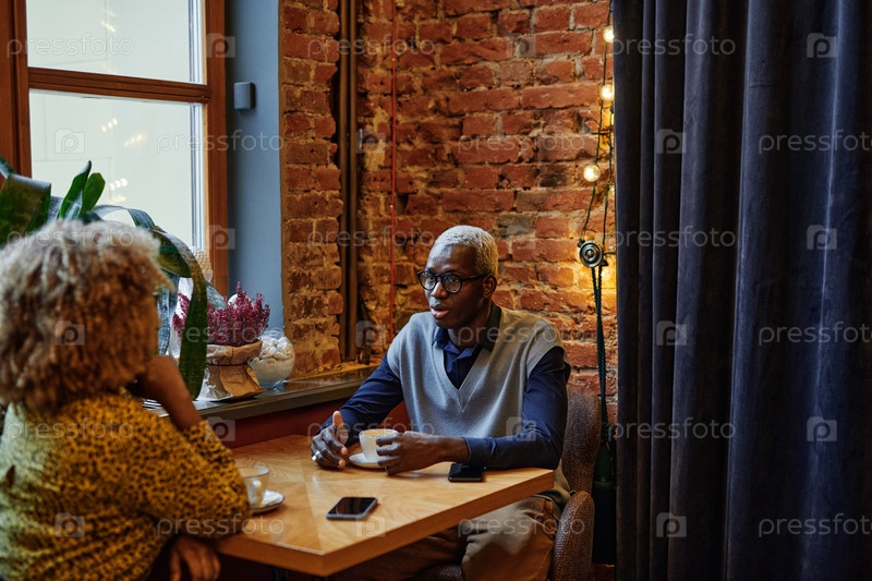 Пара пьет кофе в кафе