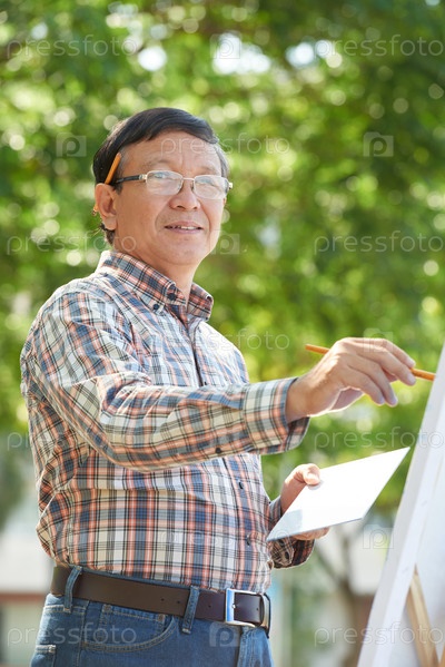 Вьетнамский мужчина рисует картину на открытом воздухе