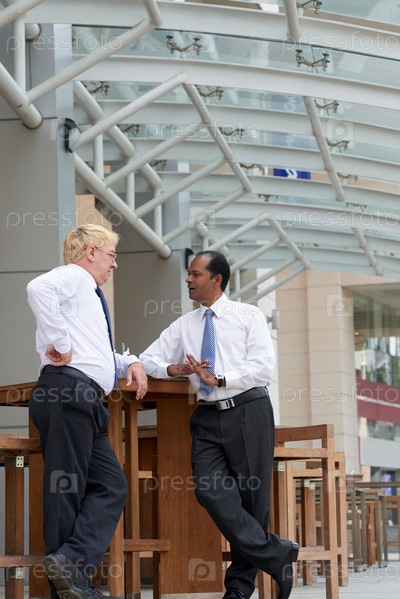 Деловые люди в Outdoor Coffeeshop