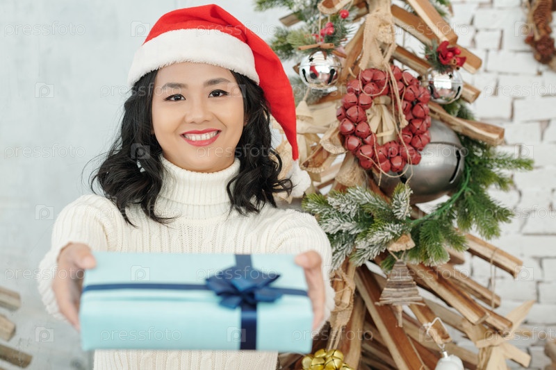 Женщина дарит рождественский подарок