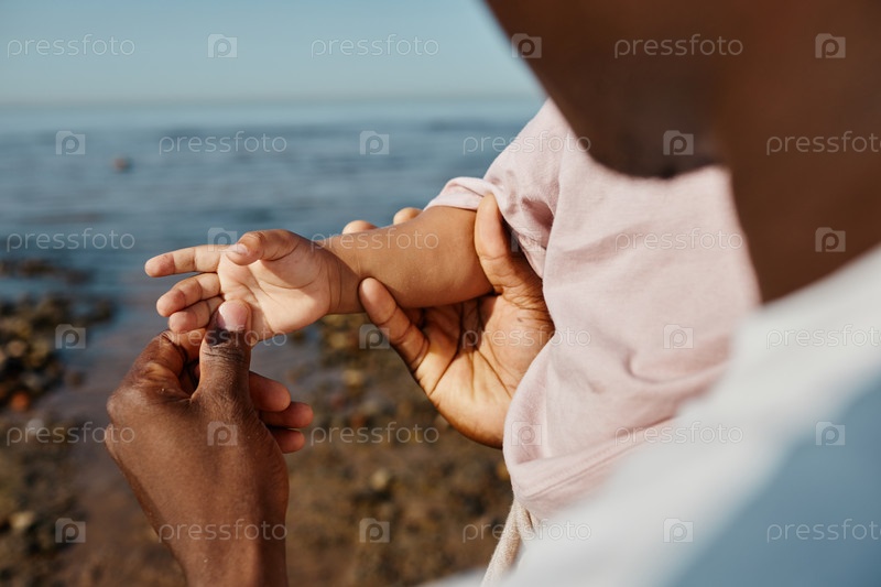 Отец держит ребенка за руку