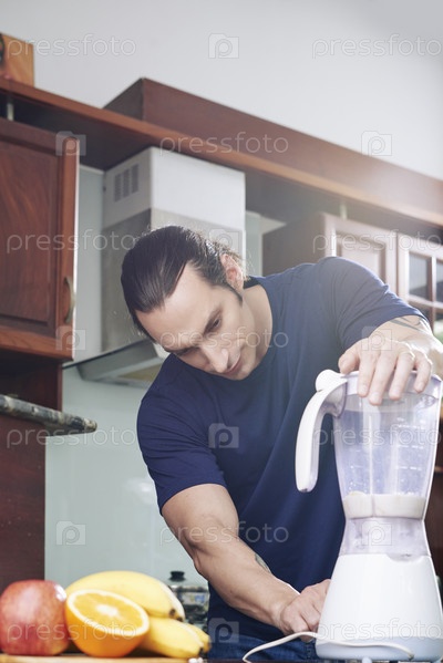 Человек, делающий банановый смузи Fit