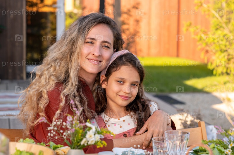 Женщина обнимает свою дочь