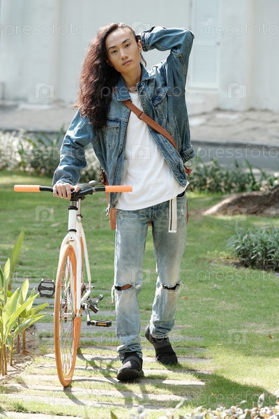 Стоящий у человека с велосипедом