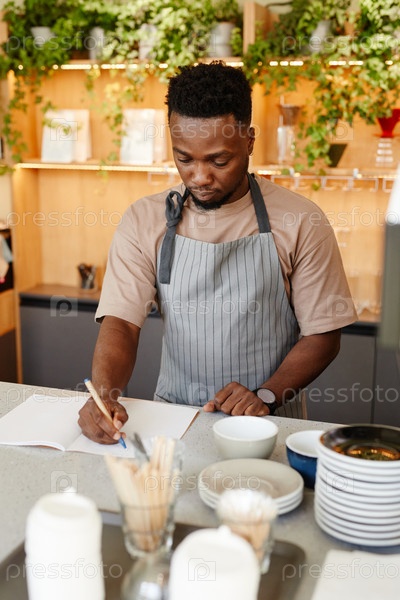 Молодой работник кафе, пишущий заметки
