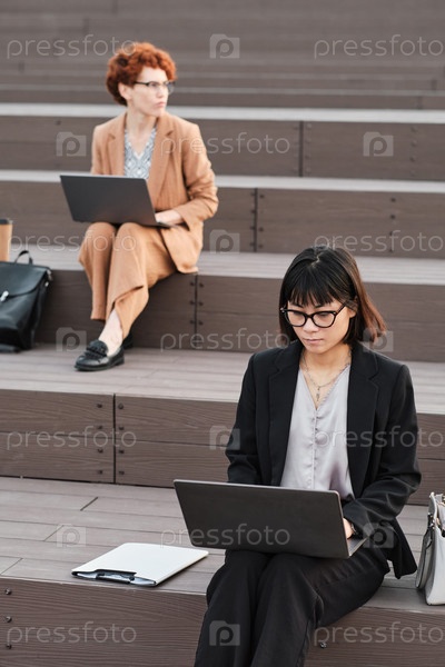 Офисные работницы-женщины с ноутбуками
