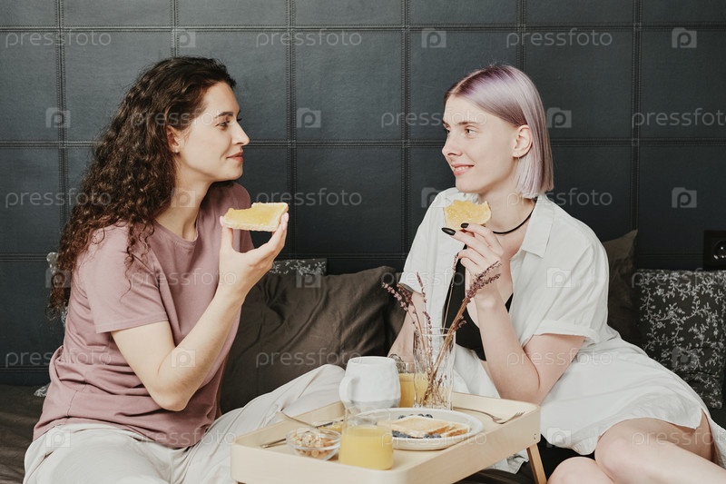 Ест тосты в постели