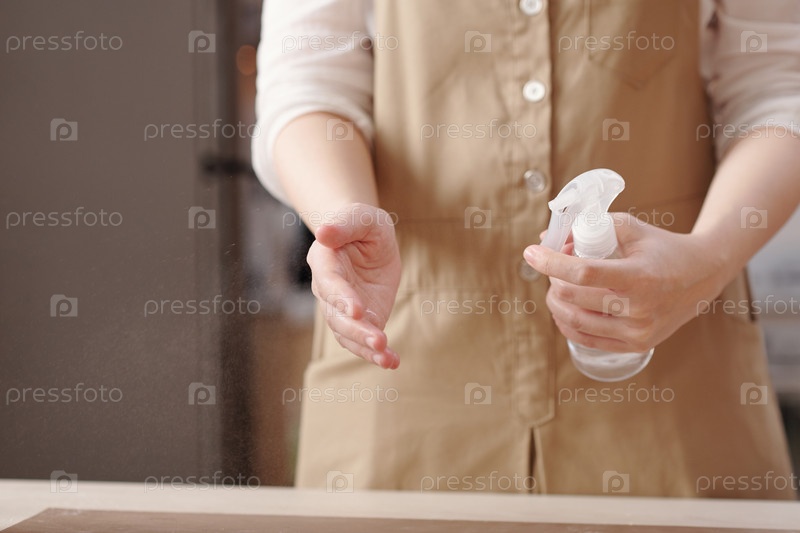 Женщина, распыляющая воду на руки