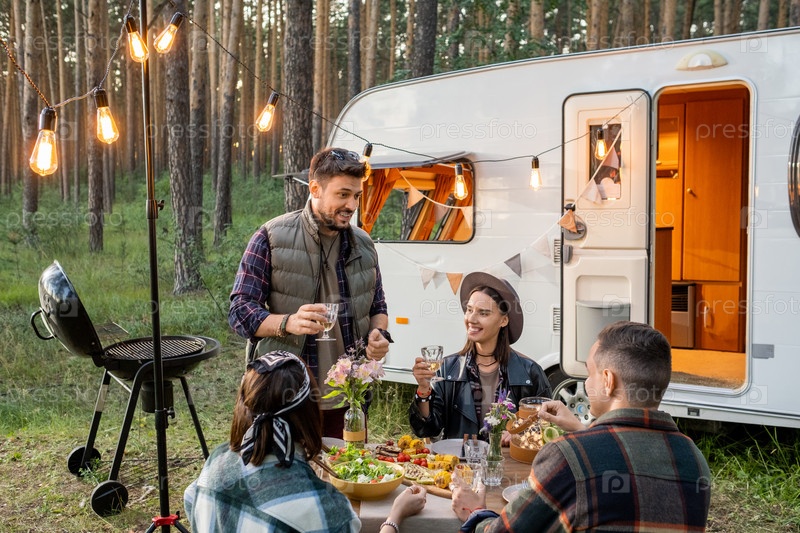 Молодой человек произносит тост перед своими друзьями