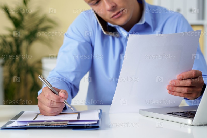 Бизнесмен записывает подробности