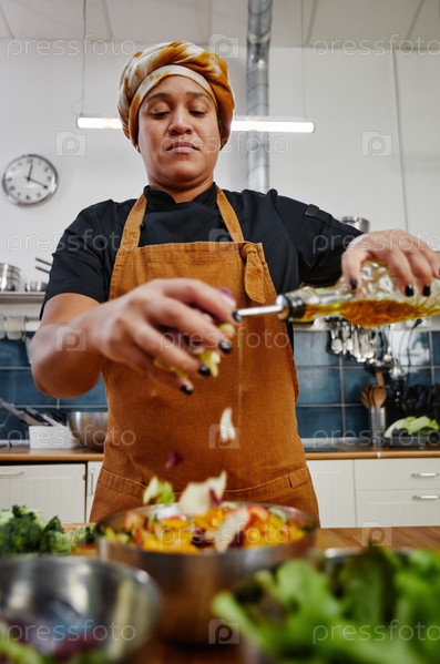 Женщина, делающая салат на кухне